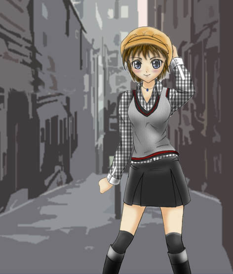 あずささんはとっても大人に見えるけど、実は20歳。よく考えたら大学1年生とか2年生ですよ。ということでちょっと活発な出で立ちにしてみました。